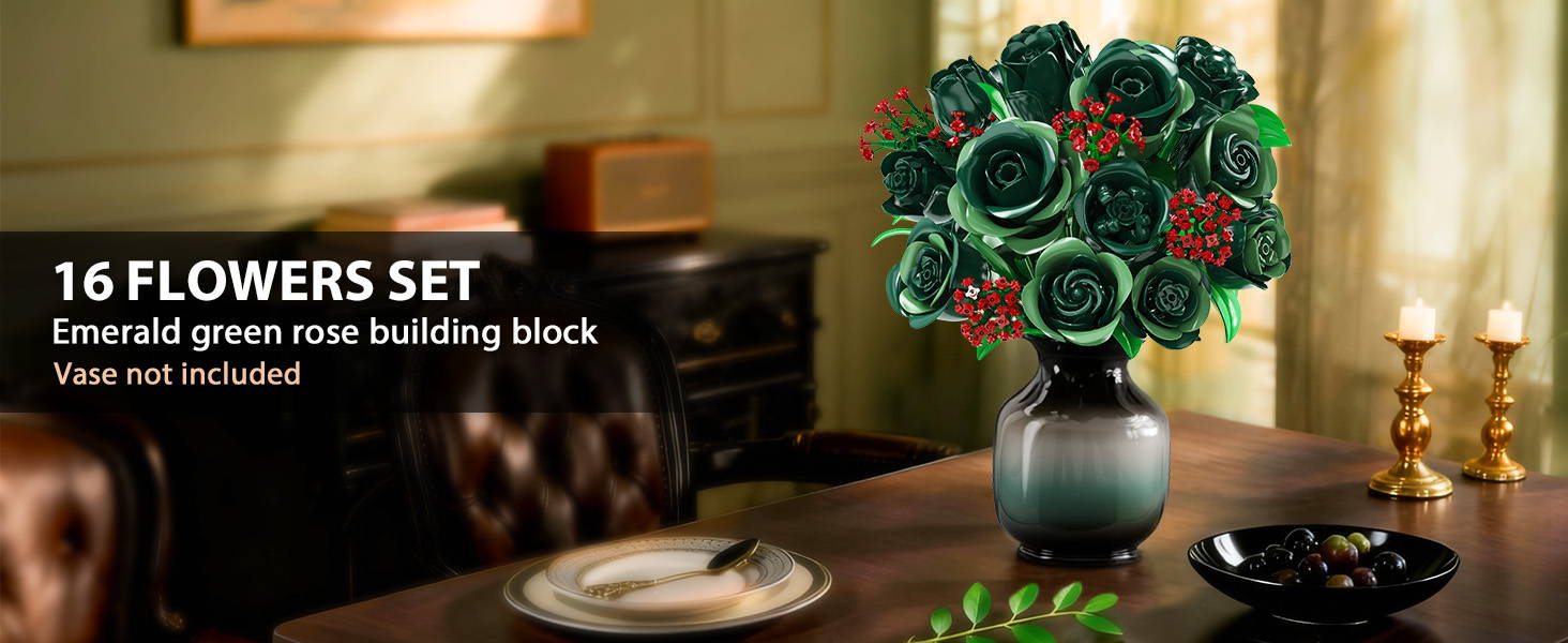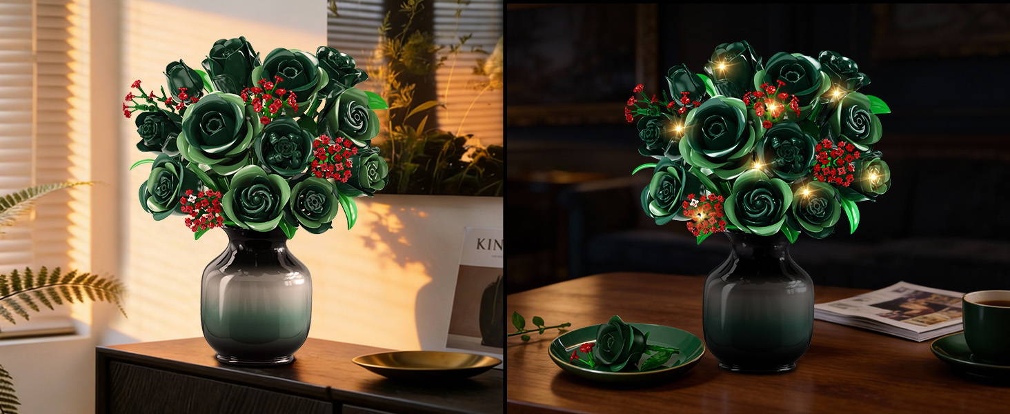 Inspiriert von der seltenen Schönheit grüner Rosen in Kombination mit gypsophila symbolisiert dieses Blumen Baustein Set Hoffnung, Ruhe und eine besondere Form der Liebe. Grüne Rosen stehen für Erneuerung und emotionale Balance, während die roten Akzente Wärme und Lebendigkeit verleihen – für ein beruhigendes, positives Ambiente in Ihrem Zuhause